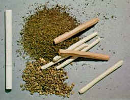 Most users roll loose marijuana into a cigarette (called a joint or a nail) or smoke it in a pipe. One well-known type of water pipe is the bong. Some users mix marijuana into foods or use it to brew a tea. Another method is to slice open a cigar and replace the tobacco with marijuana, making what's called a blunt. When the blunt is smoked with a 40 oz. bottle of malt liquor, it is called a "B-40."